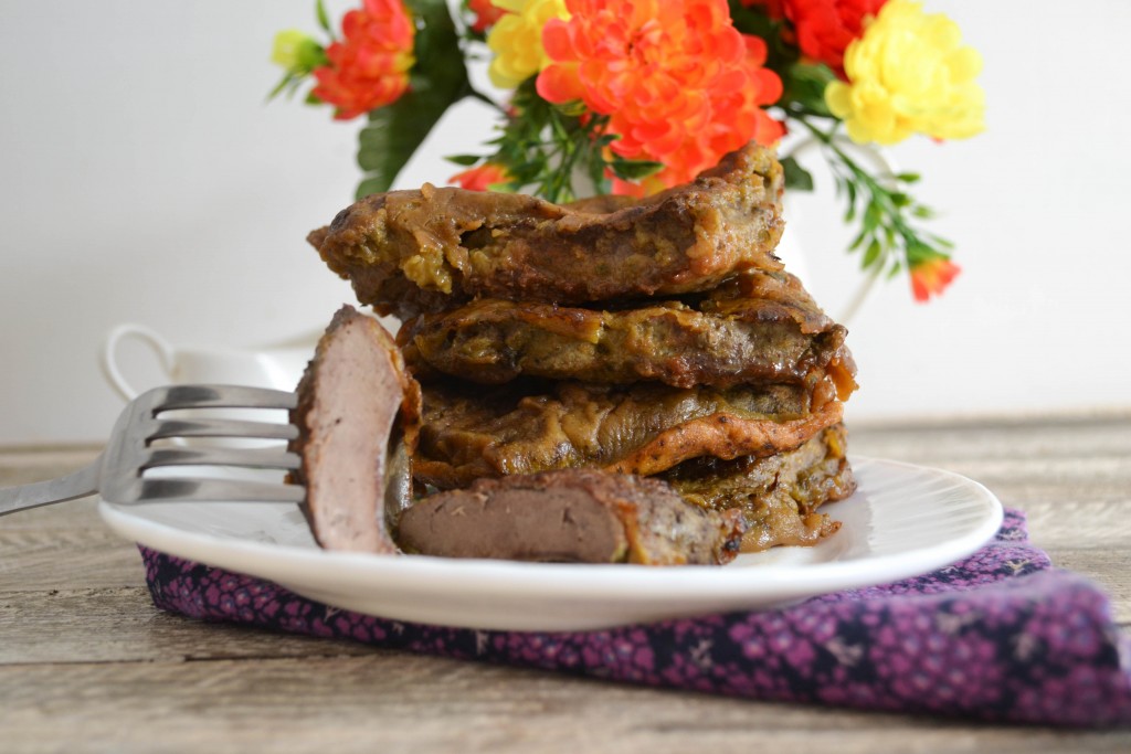 По окончании приготовления выложить аппетитную и вкусную накрахмаленную печень на блюдо и подать на стол.
