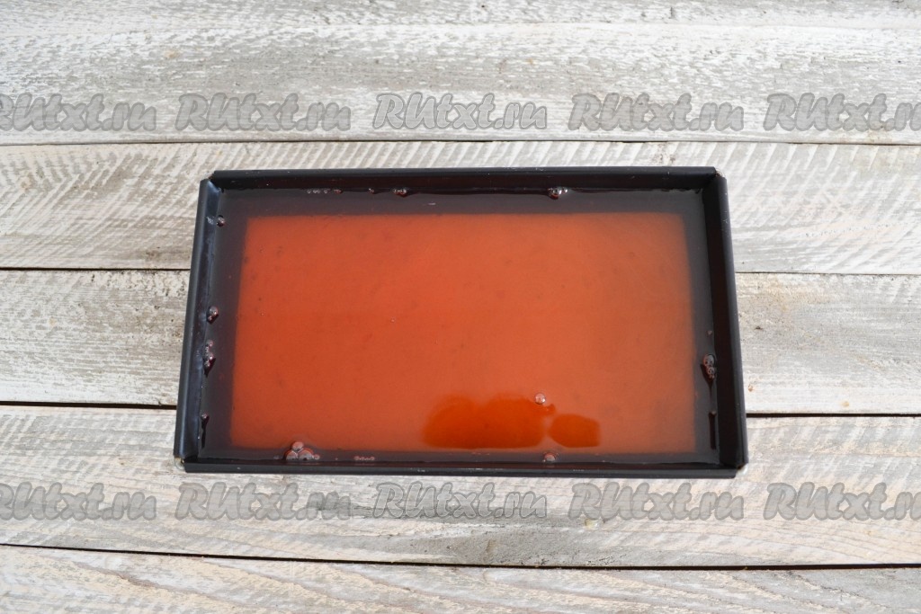 Если остались комочки нерастаявшего желатина, поставьте сотейник на слабый огонь и, помешивая, дождитесь однородности. Не доводите до кипения!