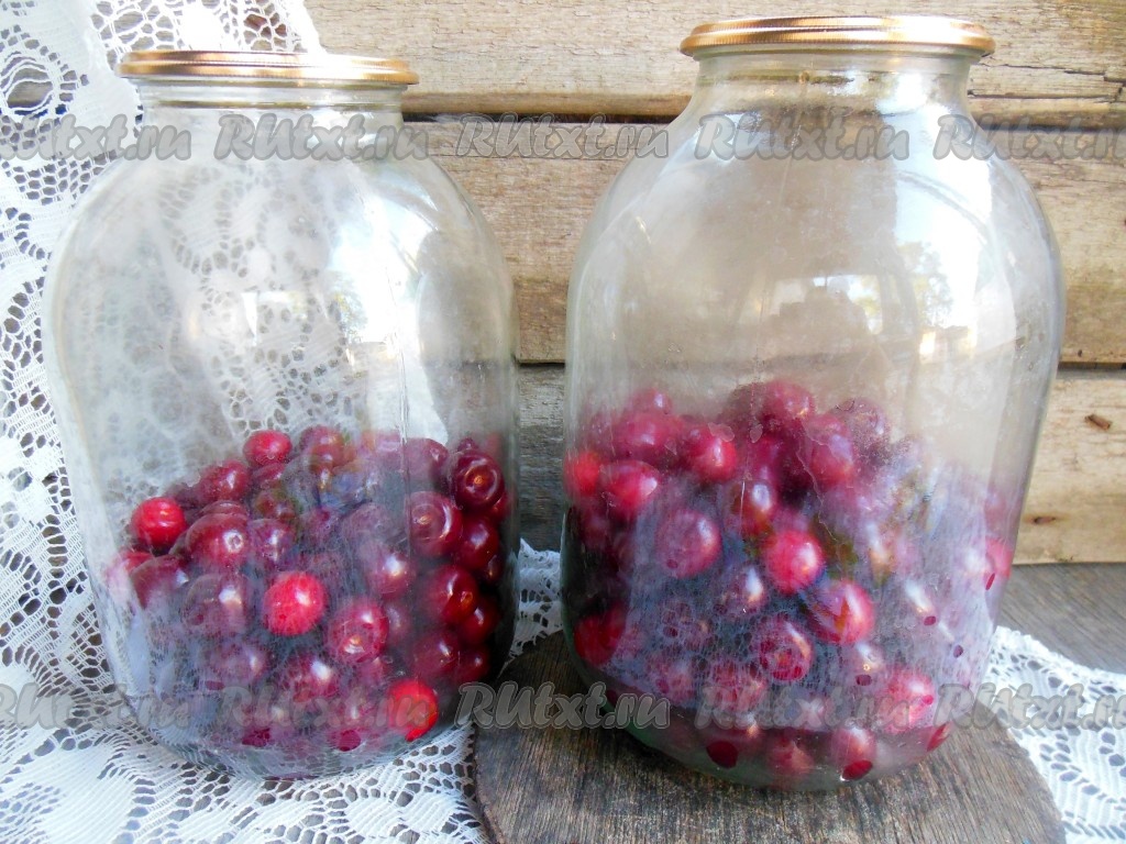 Для того чтобы компот из черешни был ярким и насыщенным, в каждую банку добавьте ягоды (примерно, 1/3 банки).