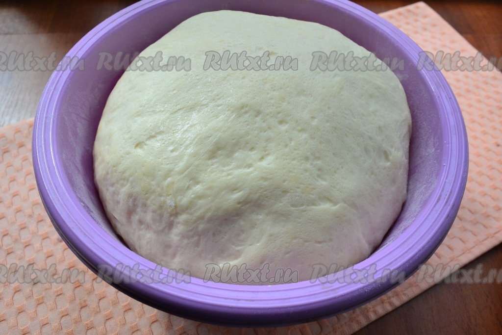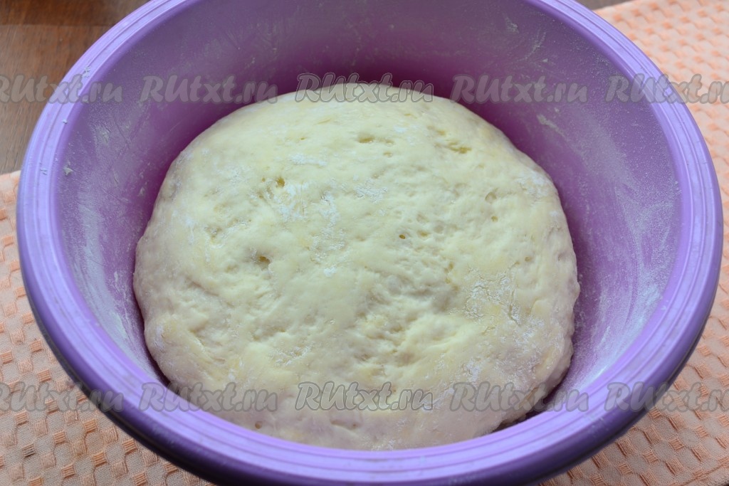 Далее тесто немного обмять и снова оставить в теплом месте на 1,5 часа. В этот раз тесто увеличится раза в 3.