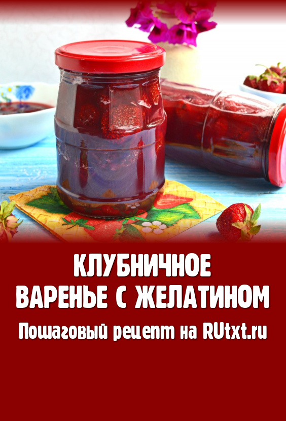 Предлагаю вам заготовить на зиму клубничное варенье с желатином. Это варенье готовится быстрым способом, с целыми ягодками. Обычно клубничное варенье быстрого приготовления получается жидким и, для того чтобы его долго не уваривать, добавляется желатин. Хранить такое варенье нужно в прохладном месте. Из данного количества продуктов получится 1 литр клубничного варенья.
