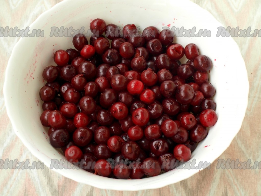 Промыть вишню, оставить, чтобы стекла вода, затем удалить косточки.