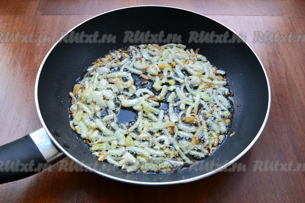Жарить лук на среднем огне, помешивая, до золотистого цвета.