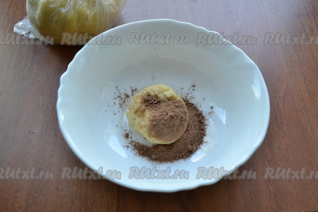 К маленькому кусочку теста добавить какао-порошок.