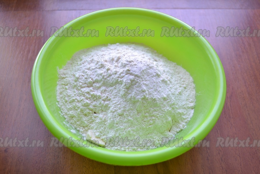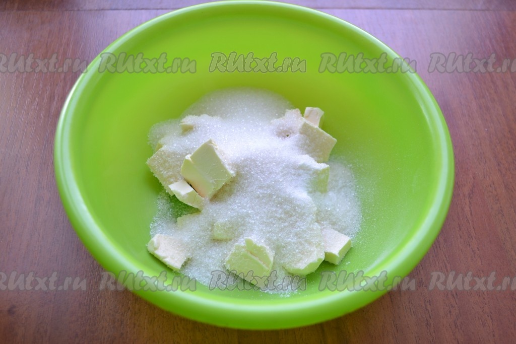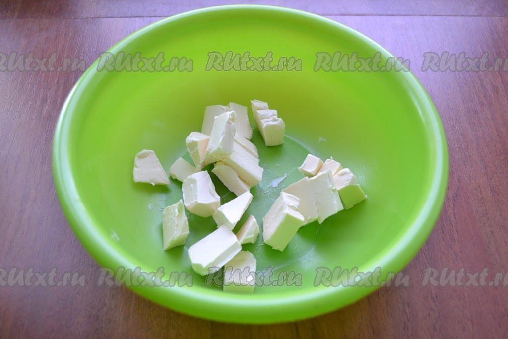 В миску нарезать кубиками сливочное масло.