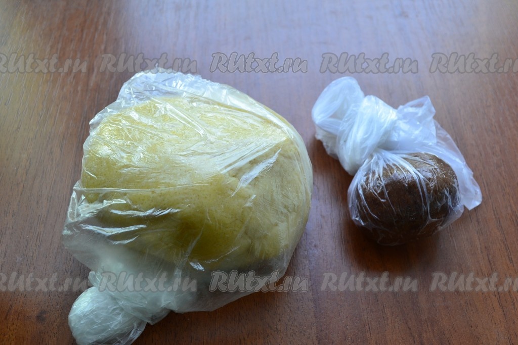 И большую, и меньшую части теста поместить в целлофановые пакеты и отправить в холодильник на 1-1,5 часа.