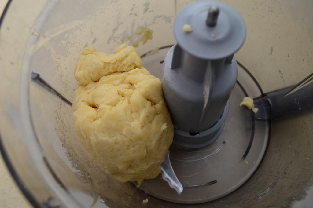 Далее влить ледяную воду и снова включить блендер, чтобы замесить тесто.