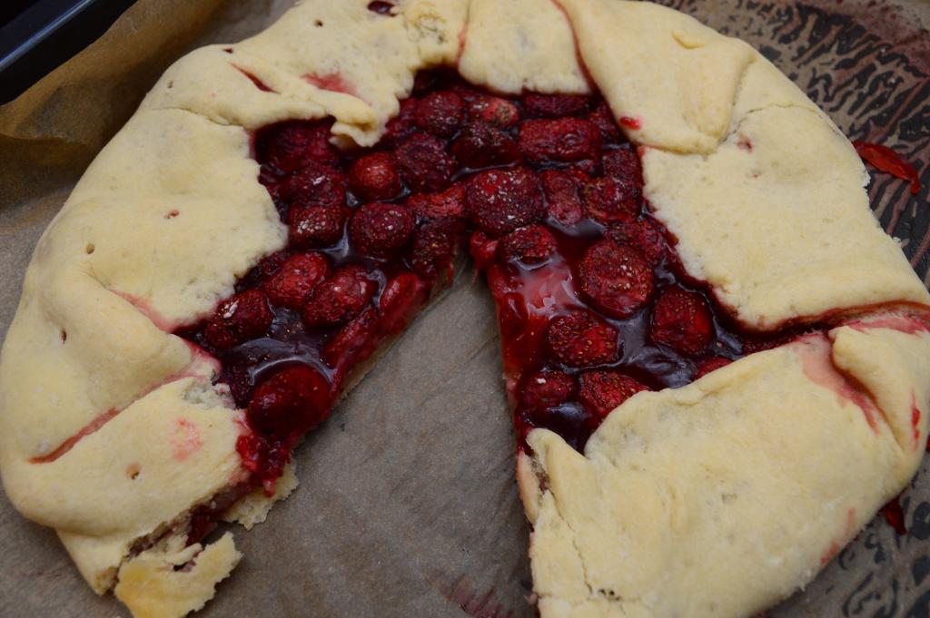 Выпекать галету с свежей клубникой в разогретой до 180 градусов духовке 20-25 минут (до лёгкого зарумянивания теста).