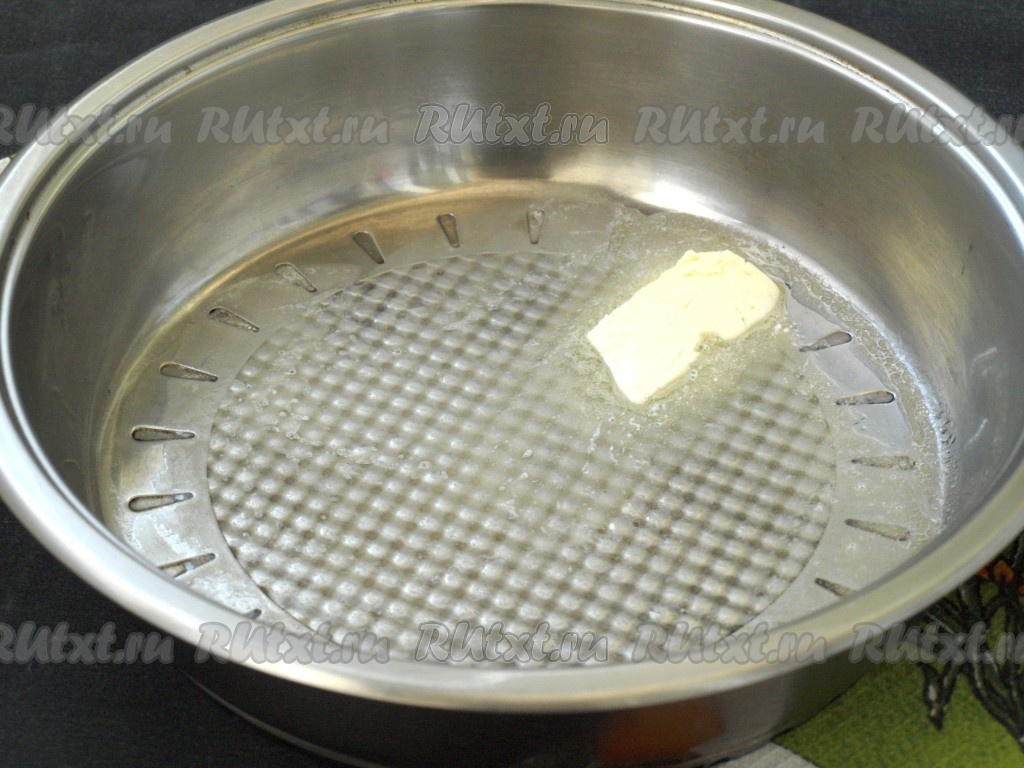 Сковороду поставить на огонь, добавить кусочек сливочного масла и растопить. На этом этапе, по желанию, можно добавить лук, грибы, морковь и слегка обжарить. Я в этот раз не добавляла.