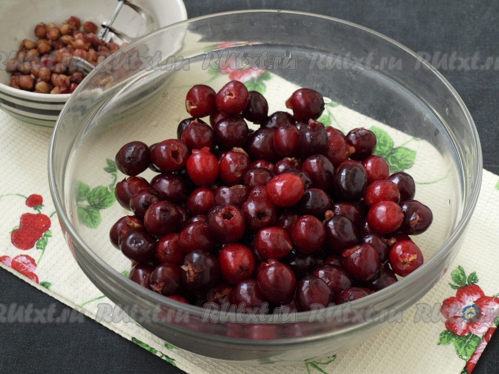 Черешню вымыть холодной водой, удалить косточки специальным приспособлением. После удаления косточек вес черешни составил 640 грамм.
