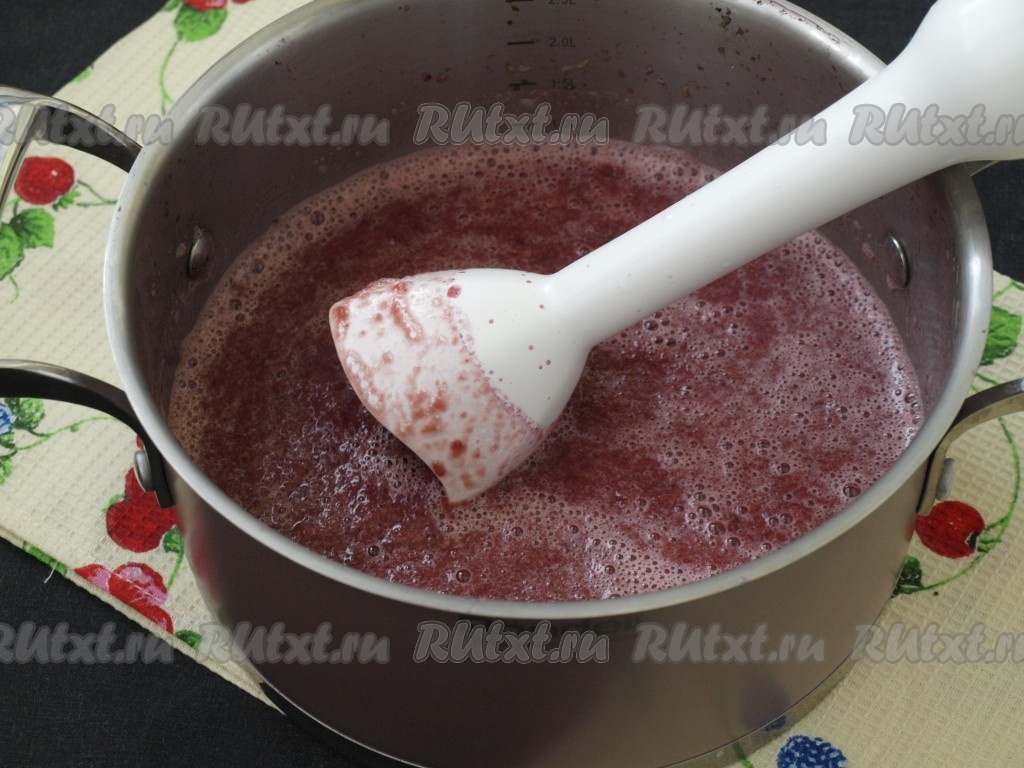 С помощью погружного блендера черешню пюрировать. Можно перебить ягоды частично.