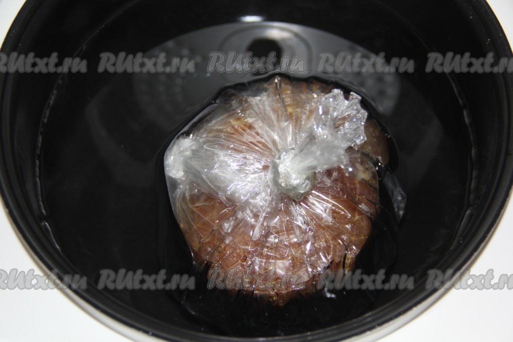 По истечении времени достать мясо из мультиварки, снять пакет и обсушить на решётке. Остудить мясной орех в холодильнике, примерно 2-4 часа.