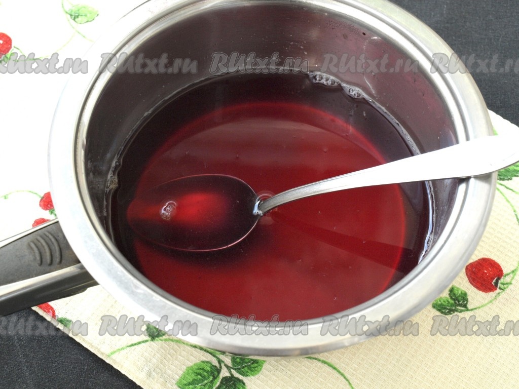 В горячий вишнёвый компот добавить набухший желатин и хорошо размешать до полного растворения желатина.