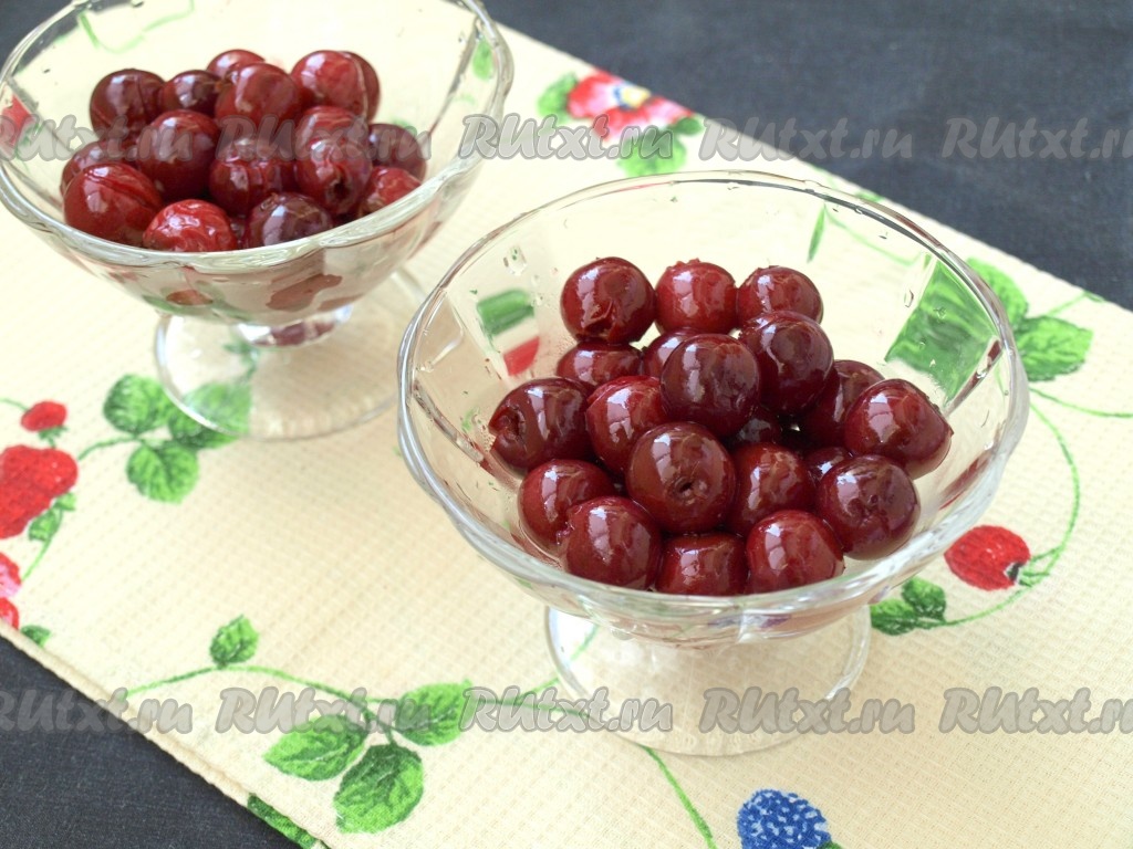 Разложить ягоды в креманки. Если хотите разложить в креманки не сваренные ягоды, а свежие, то сваренные ягоды отставьте, а из свежих также удалите косточки и разложите в креманки.