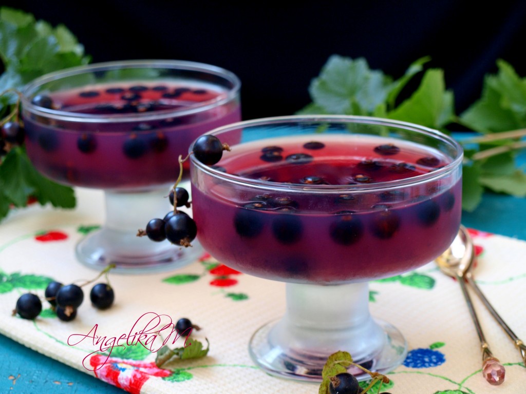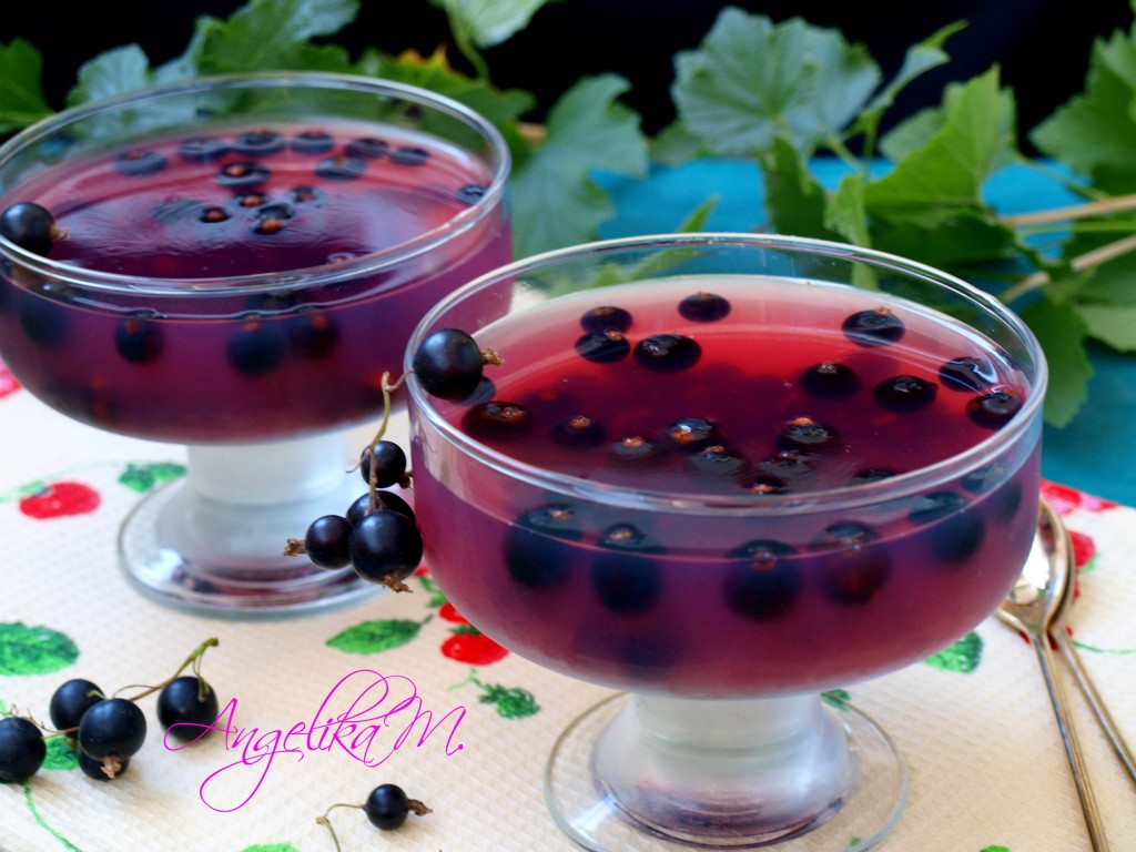 Застывшее, невероятно вкусное желе, приготовленное из черной смородины с желатином, подать на десерт. Очень освежает!