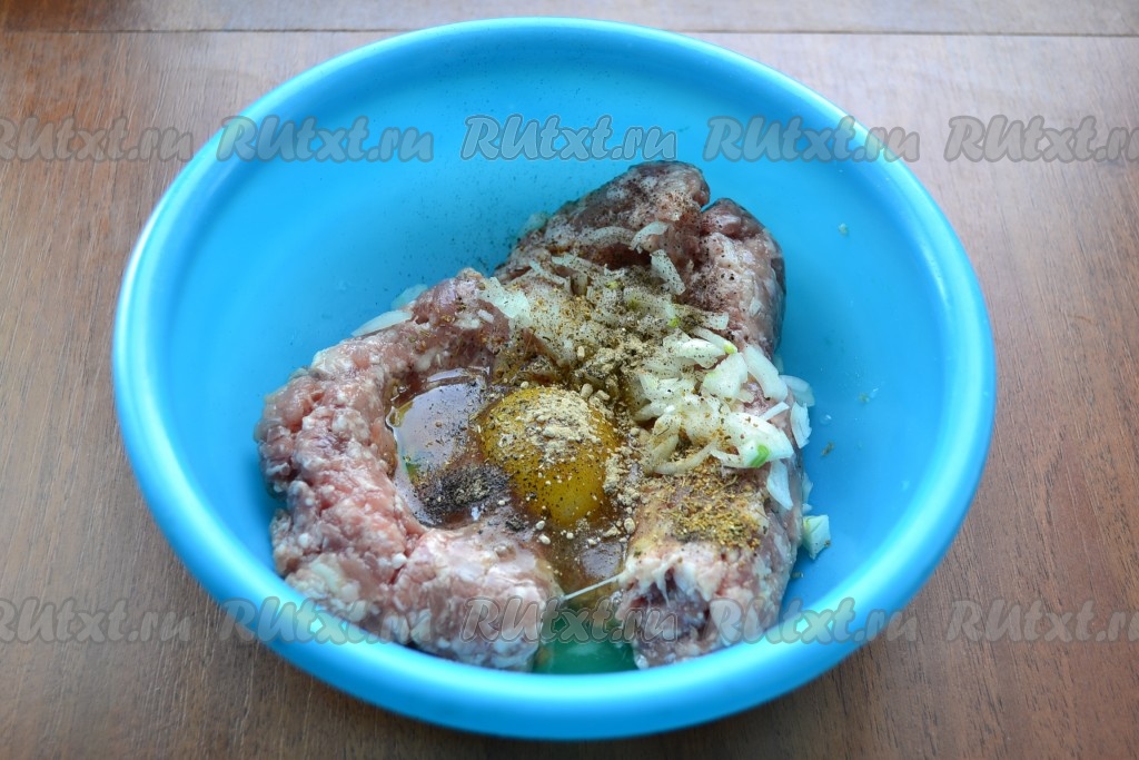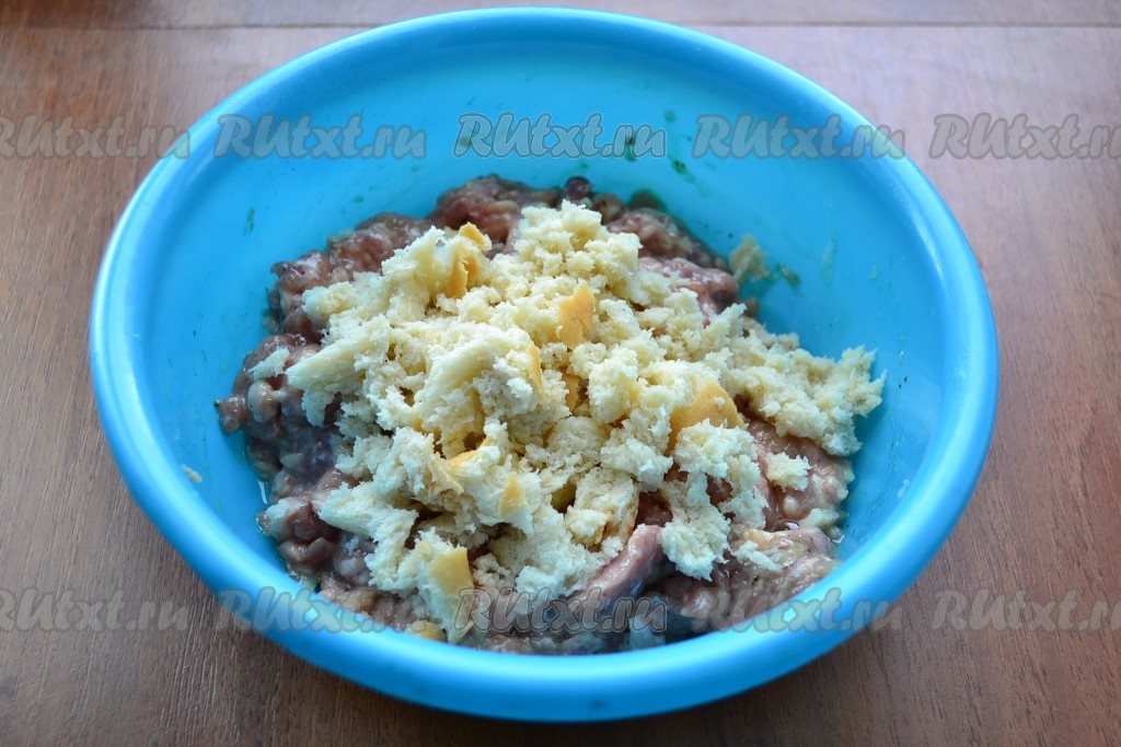 Также добавить замоченные в молоке и отжатые ломтики батона.