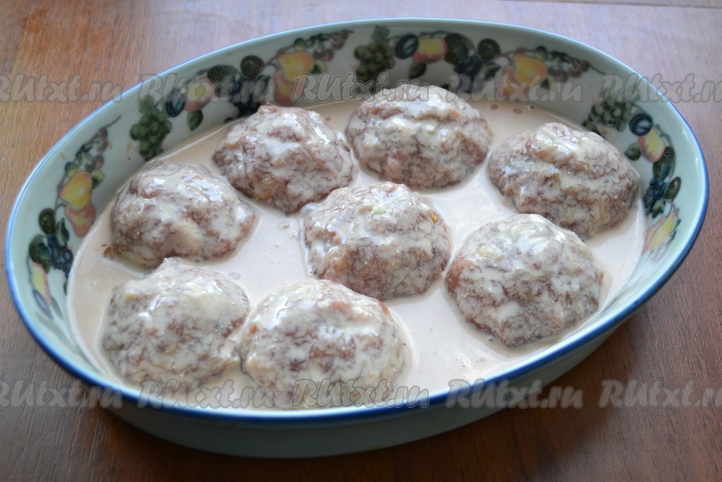 В форму для запекания, смазанную растительным маслом, выложить тефтели.