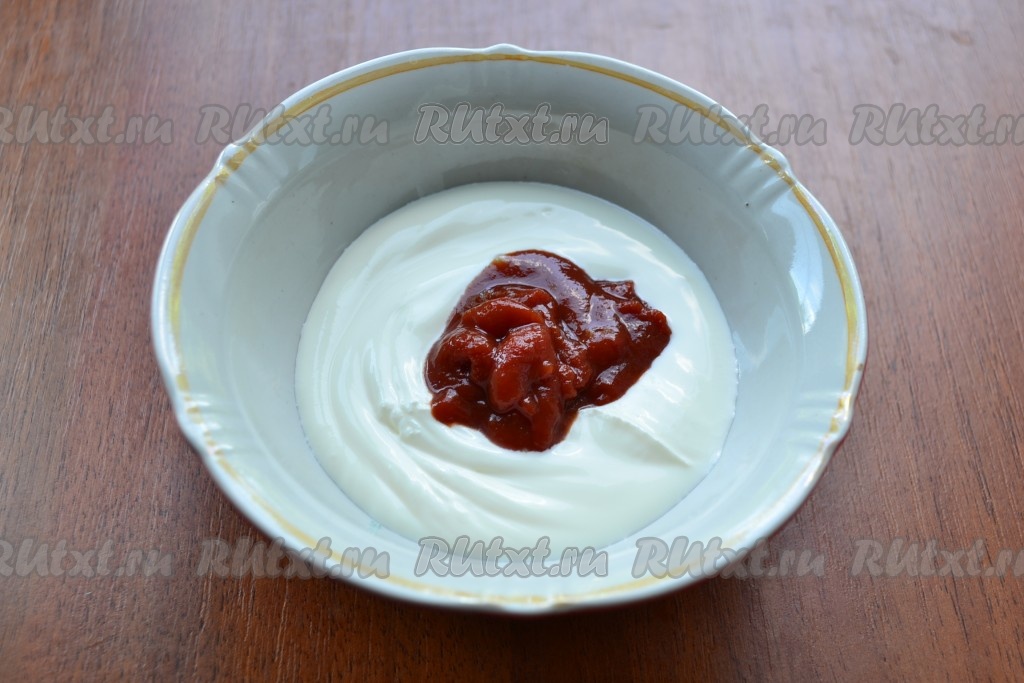 Смешать сметану с томатной пастой, затем разбавить все водой, посолить по вкусу получившийся соус.