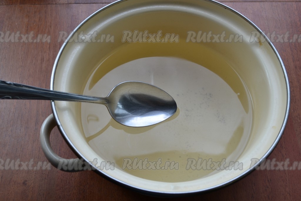 Для приготовления маринада в кипящую воду добавить соль, сахар, дать 3-4 минуты прокипеть. Влить уксус и снять с огня.