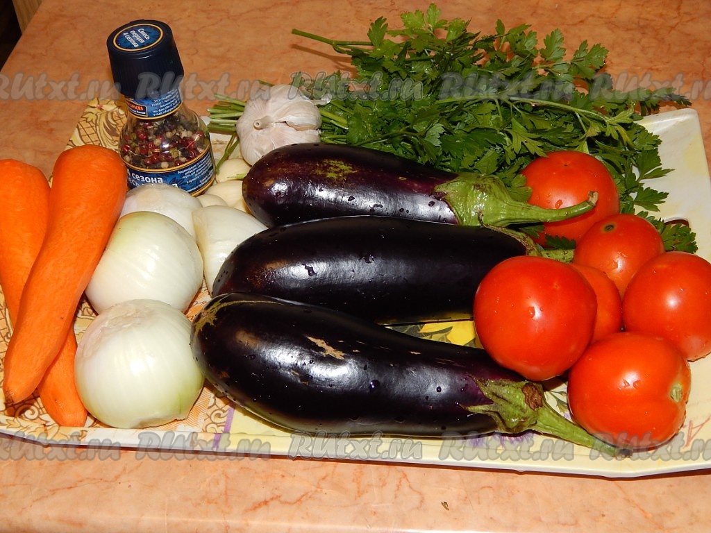 Очищаем морковь, лук и чеснок. Моем помидоры, баклажаны и зелень.