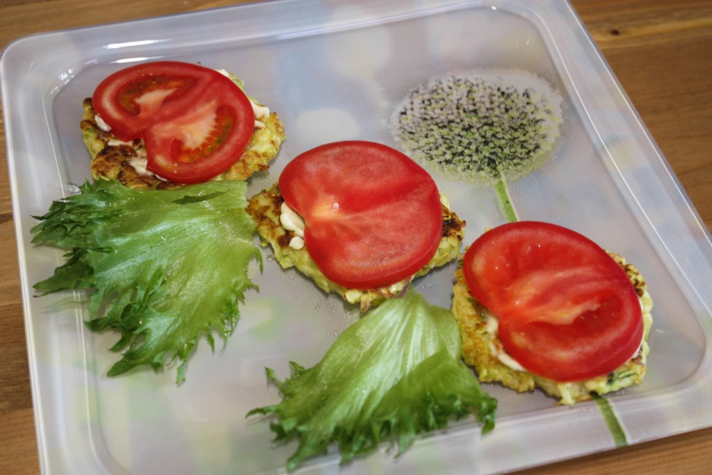 Оладьи из кабачков в сочетании с соусом и свежими помидорами станет великолепной закуской. Очень вкусно, попробуйте!