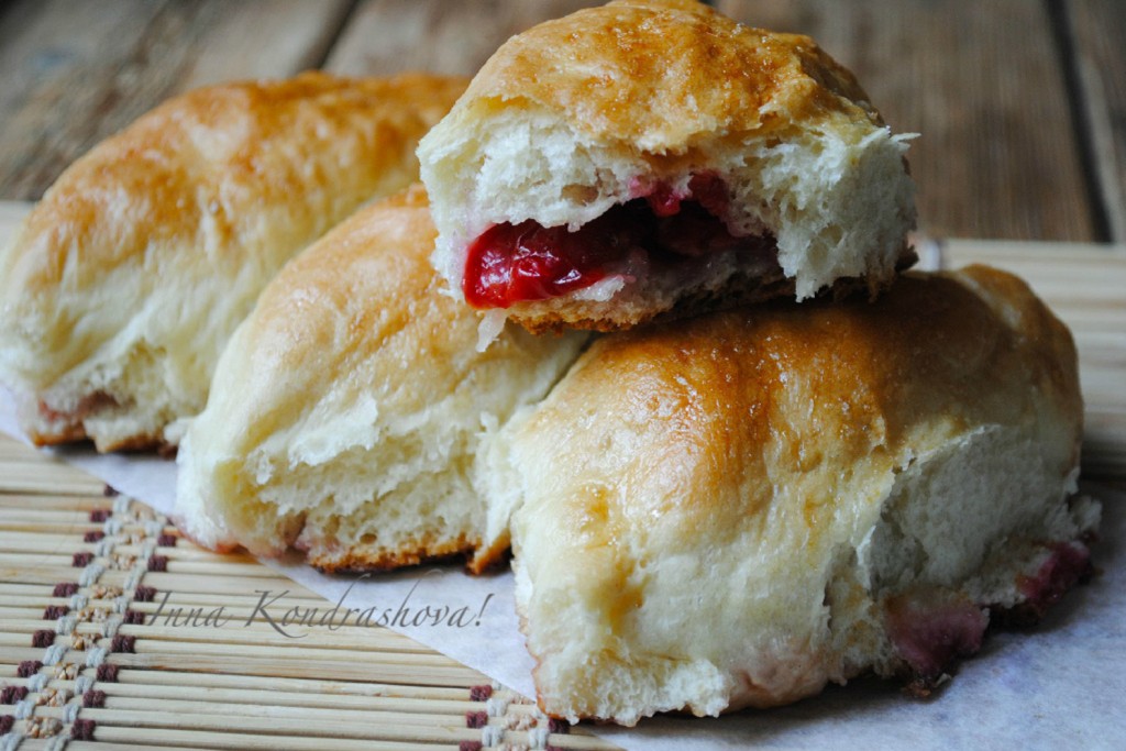 Сегодня я хочу поделиться рецептом приготовления в духовке сладких сдобных пирожков на сухих дрожжах. Пирожки получаются просто воздушными и исчезают со стола за считанные минуты. В качестве начинки можно использовать сезонные ягоды и фрукты. Я готовила с малиной, вишней и абрикосами. Из данного количества ингредиентов выходит 20 вкусненьких пирожочков.