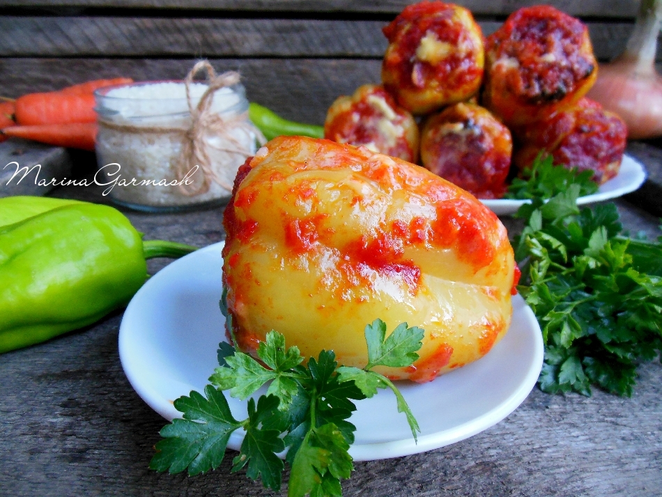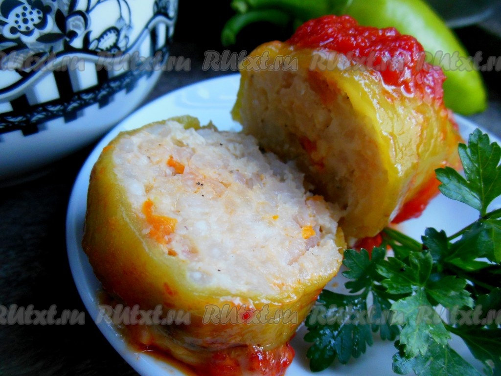 Перцы, фаршированные куриным фаршем, запеченные в духовке, получаются очень вкусными. Тонкая корочка перца покрывается легким румянцем, и делает блюдо очень аппетитным. В результате запекания перец пропитывается сочной, ароматной томатной подливой. Готовлю для своей семьи по два больших противня. Обязательно попробуйте это сытное блюдо! Рекомендую!