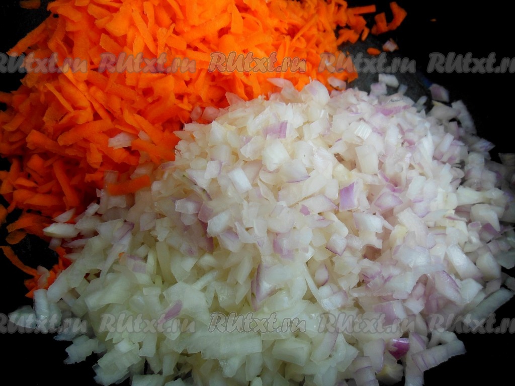 Лук нарежьте небольшими кусочками, морковь натрите на терке.