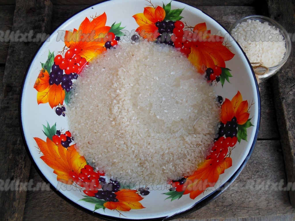 Рис промойте несколько раз в теплой воде.