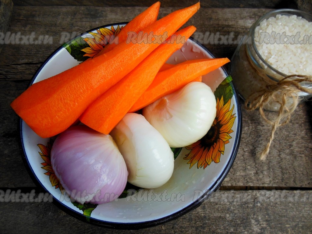 Очистите морковку и лук.