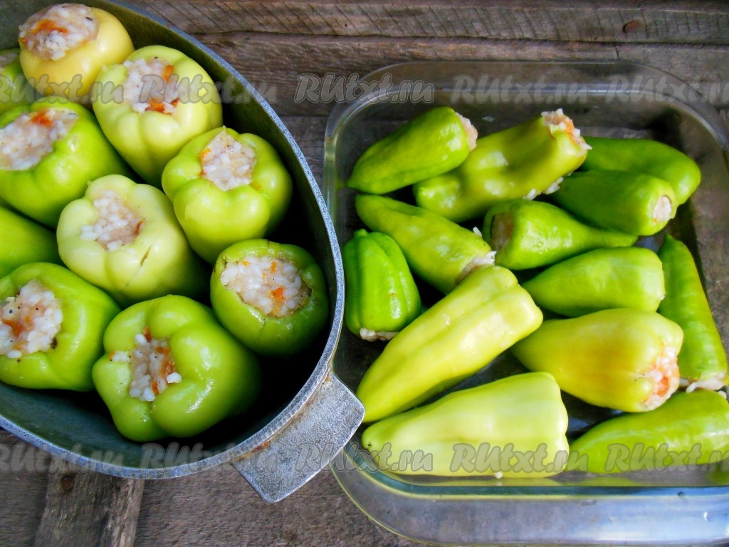 Каждый перец плотно заполните подготовленной начинкой.