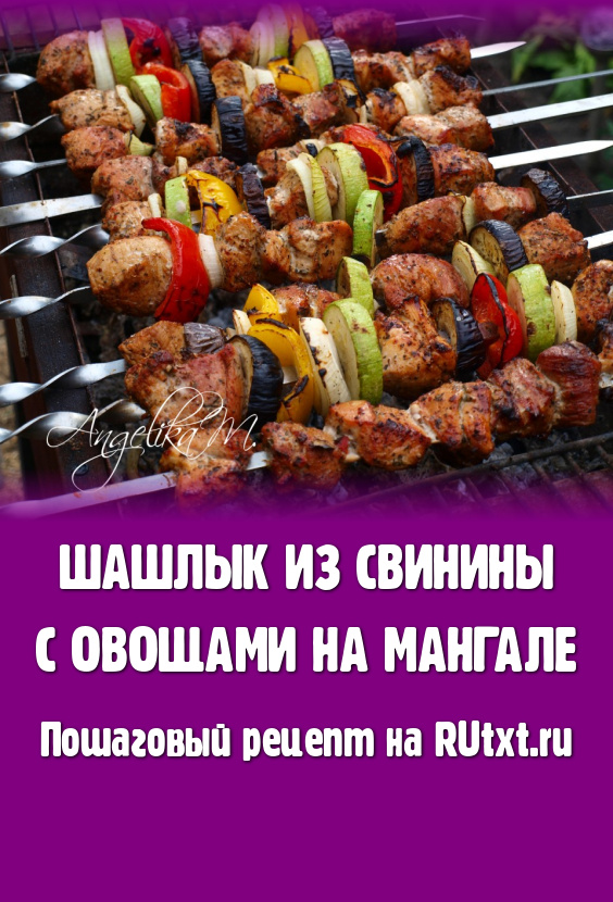 Жарить наши вкусные шашлыки из свинины с овощами на мангале на "седых" углях, постоянно прокручивая, чтобы не подгорели овощи. Готовность свинины можно определить, разрезав кусочек мяса ножом, - если свинина в разрезе будет без розового оттенка, значит мясо готово. Время приготовления во многом зависит от жара углей. Мясо и овощи получаются очень сочными, вкусными и ароматными.