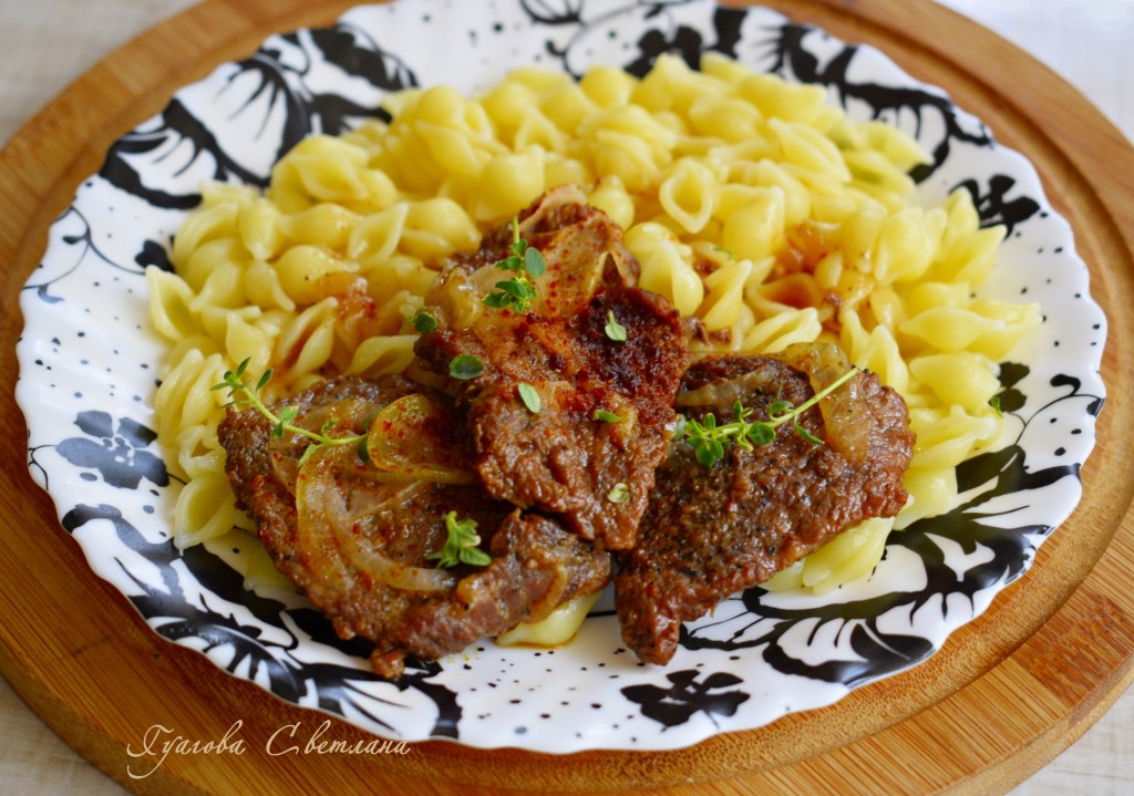 Закрываем крышку, выбираем еще раз режим "Тушение" и тушим до готовности мяса, примерно, 35-40 минут. Если Вы используете свинину, то, вполне возможно, Вам хватит и часа. Готовую ароматную, вкусную говядину с луком вынимаем из мультиварки и подаем с гарниром к столу.