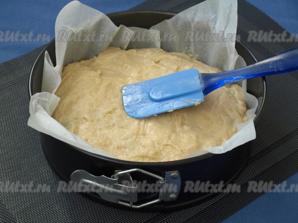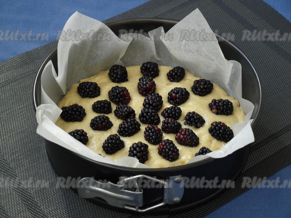Форму диаметром 22 см застелить пергаментом, далее выложить половину теста. Промытые и обсушенные ягоды ежевики разложить на поверхности теста.