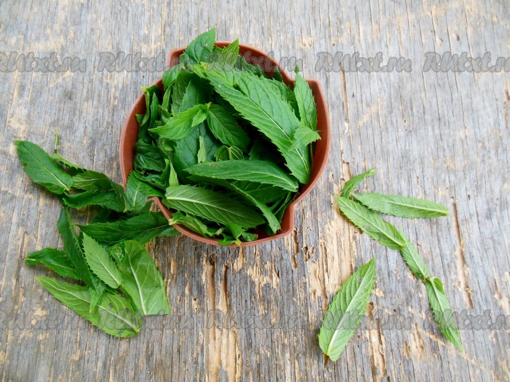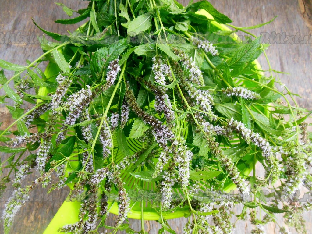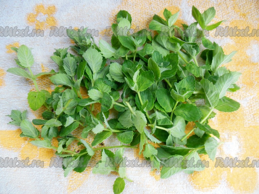 Для второго способа я беру небольшие веточки мяты (на фото шалфейная мята), промываю, даю стечь воде.