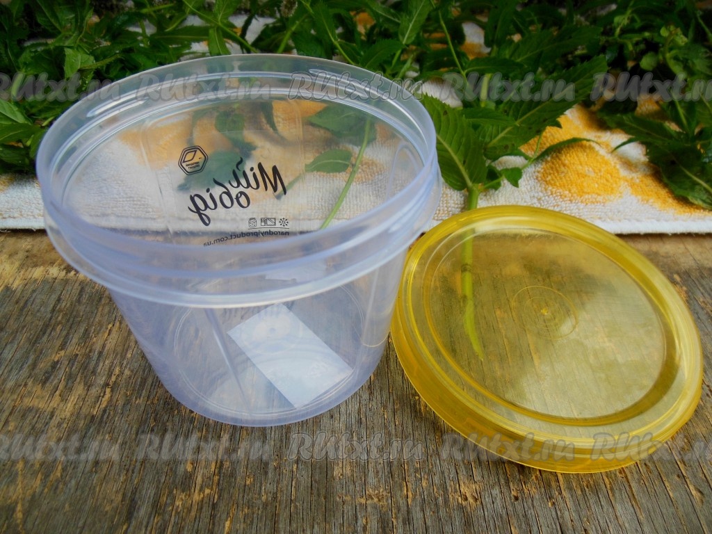 Для заморозки мяты я использую вот такой пластиковый контейнер, можно брать любую подходящую форму.