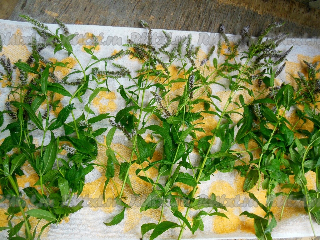 Затем разложите веточки мяты на полотенце, оставьте так на 5-7 минут.