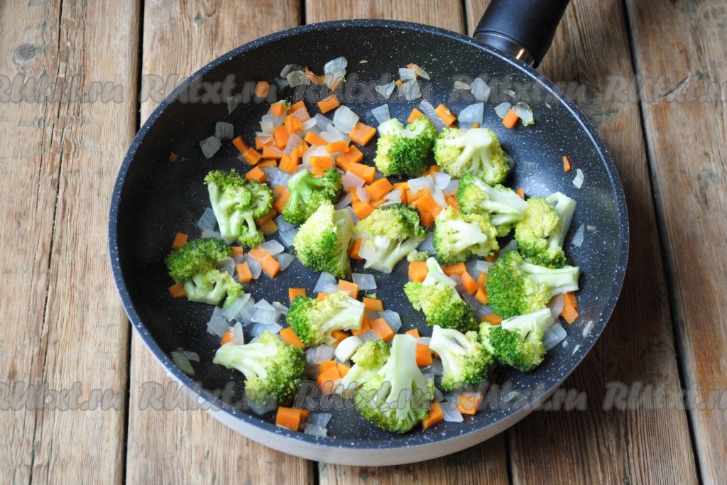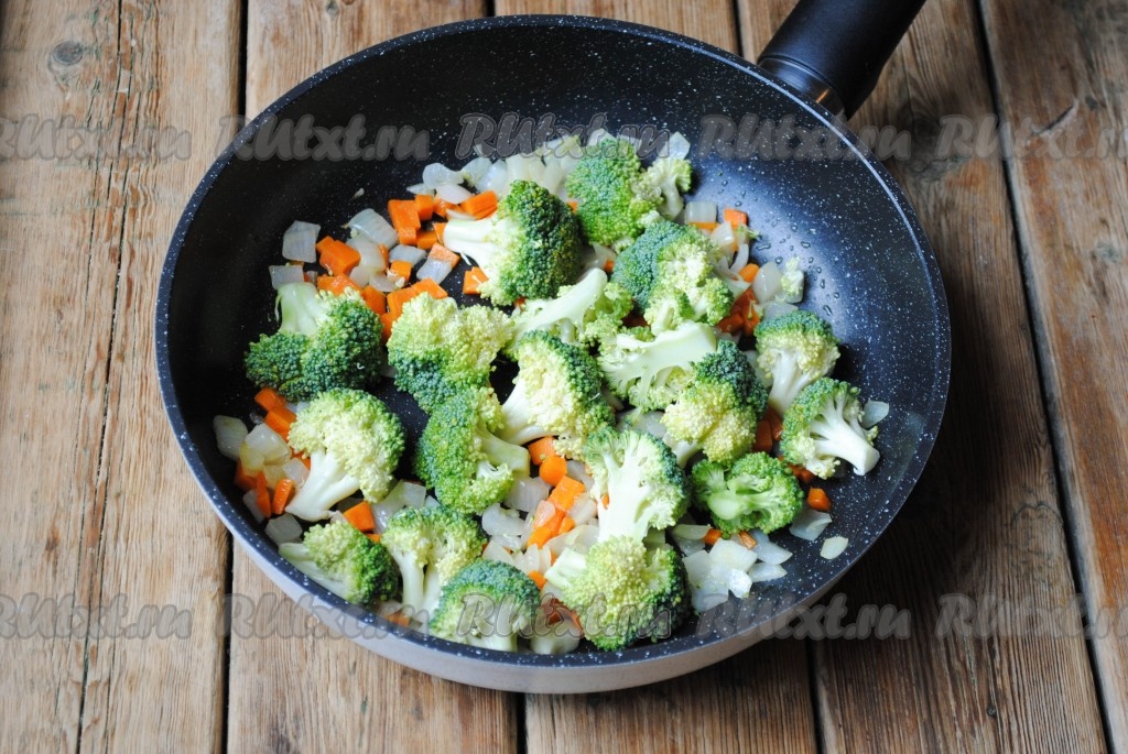 Морковь и лук должны стать мягкими, а капуста брокколи должна оставаться слегка хрустящей.