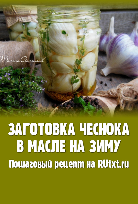 Предлагаю приготовить прекрасную заготовку из чеснока в масле на зиму. Это отличный способ сохранить чеснок, так как масло является хорошим консервантом. В масле он сохраняет все свои полезные свойства. Да и само масло становится очень вкусным и ароматным, оно отлично подойдет для выпечки, с ним получаются вкусные салаты, добавляют такое масло при жарке рыбы и креветок. Такую заготовку можно готовить как на оливковом масле, так и на подсолнечном. Специи можно добавлять по своему вкусовому предпочтению, можно заготовить чеснок и без них, на ваш выбор. Попробуйте!
