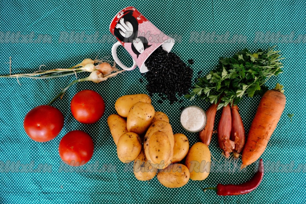 Подготовить необходимые ингредиенты для приготовления тушеной картошки с фасолью.