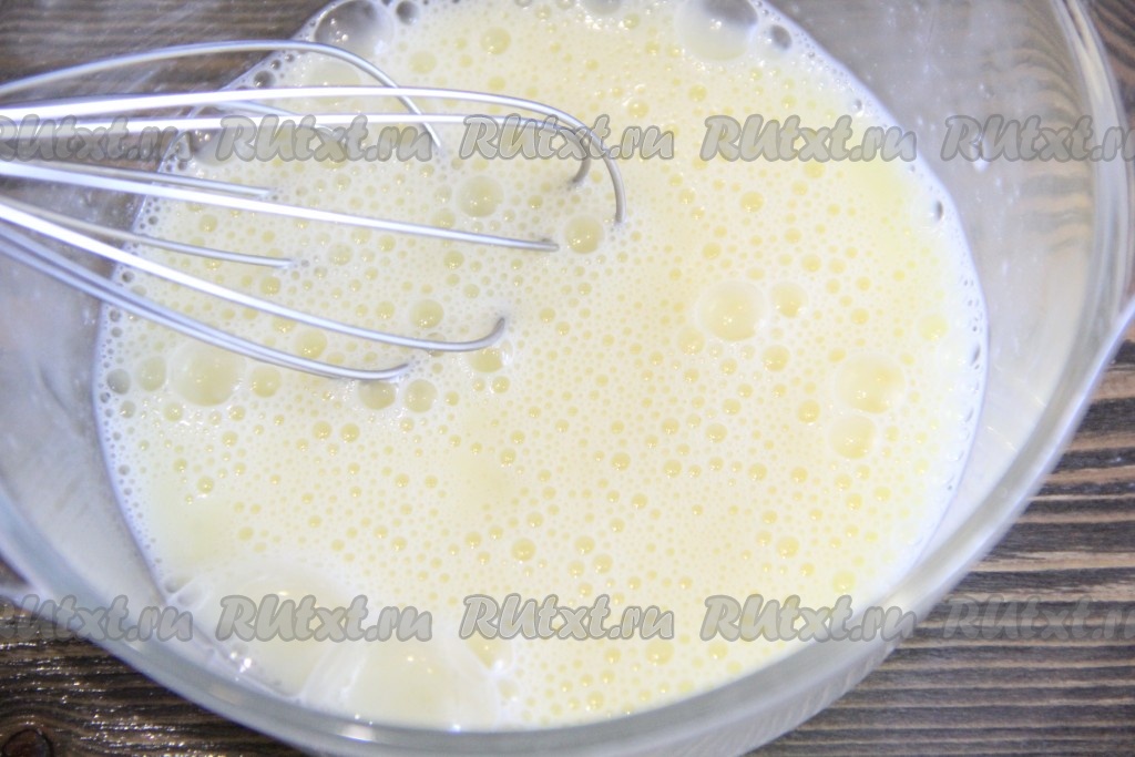 Яйца в отдельной тарелке взбить с помощью венчика.