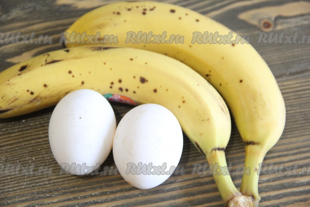 Соединить банановое пюре и яйца, тщательно перемешать. Масса получится жидкой.