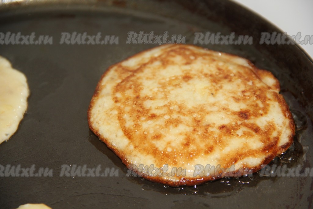 Выпекать оладьи на среднем огне с двух сторон до золотистого цвета.