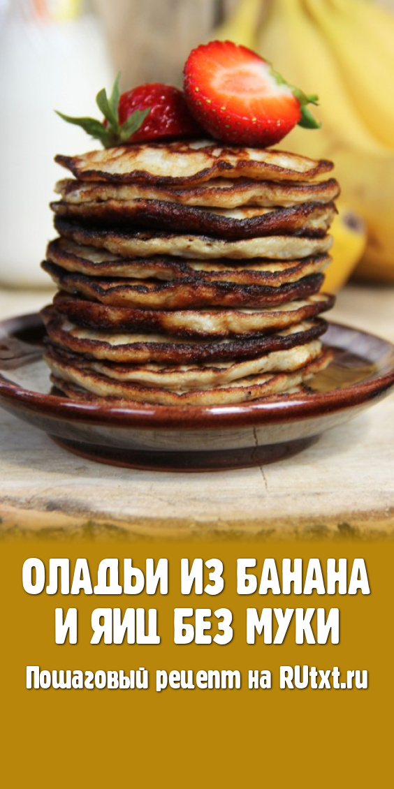 Вот такая аппетитная стопочка оладушек получилась. Оладьи из банана и яиц, приготовленные без добавлением муки, понравятся вам своим нежным вкусом.