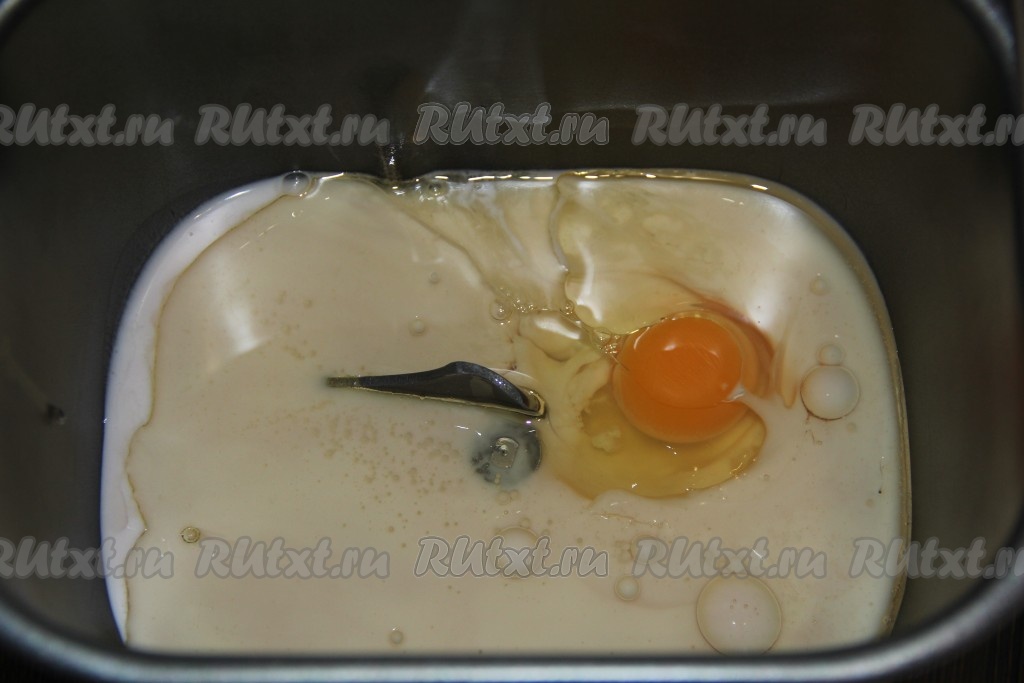 Я замес теста для пончиков сделала в хлебопечке. В ведёрко хлебопечки влить йогурт или кефир комнатной температуры, добавить растительное масло, яйцо и сахар.