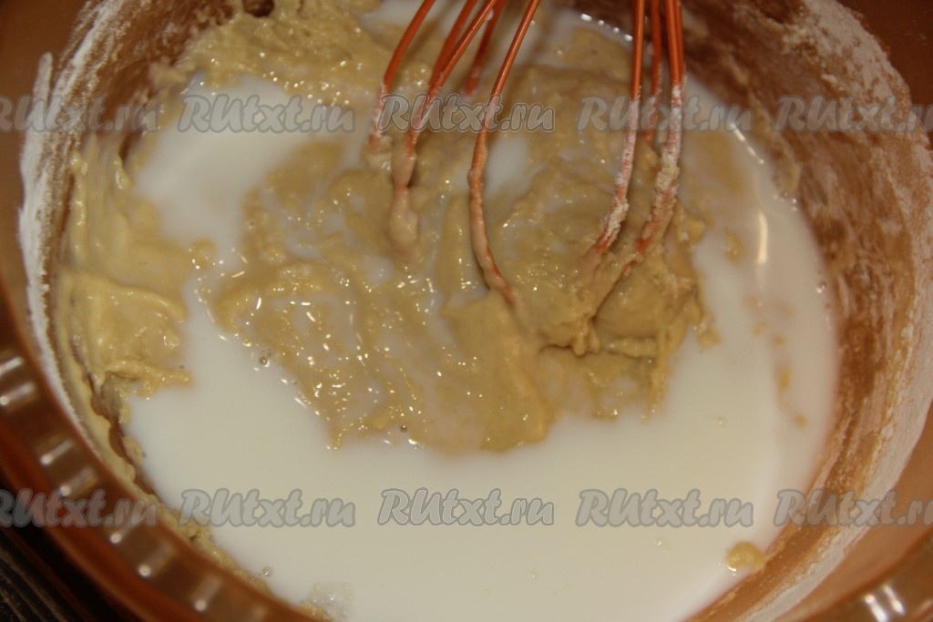Тесто получится однородным и гладким. Сливочное масло растопить и остудить до тёплого.