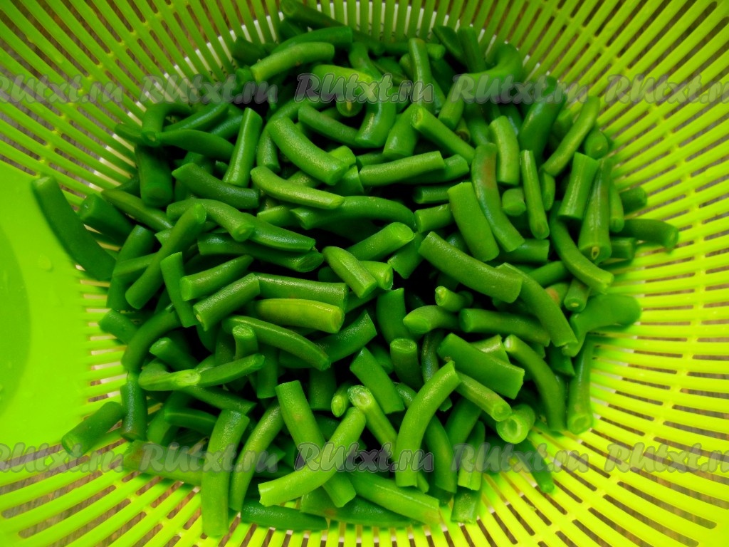 С каждого стручка срежьте с двух сторон "кончики", а затем разрежьте на небольшие кусочки длиной по 2-3 см.