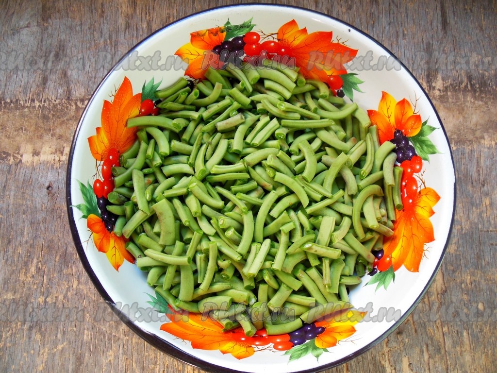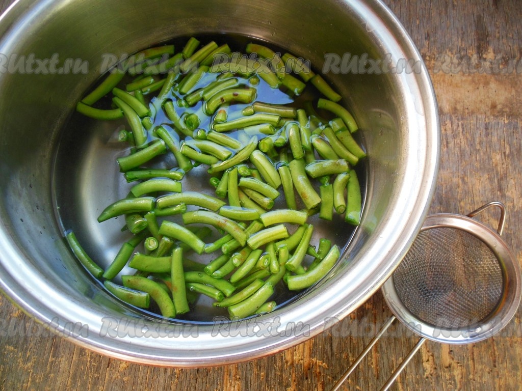 Для маринования выбирайте молодую стручковую фасоль без прожилок и хорошо сформированных фасолинок внутри. Хорошо промойте ее в воде, желательно несколько раз.