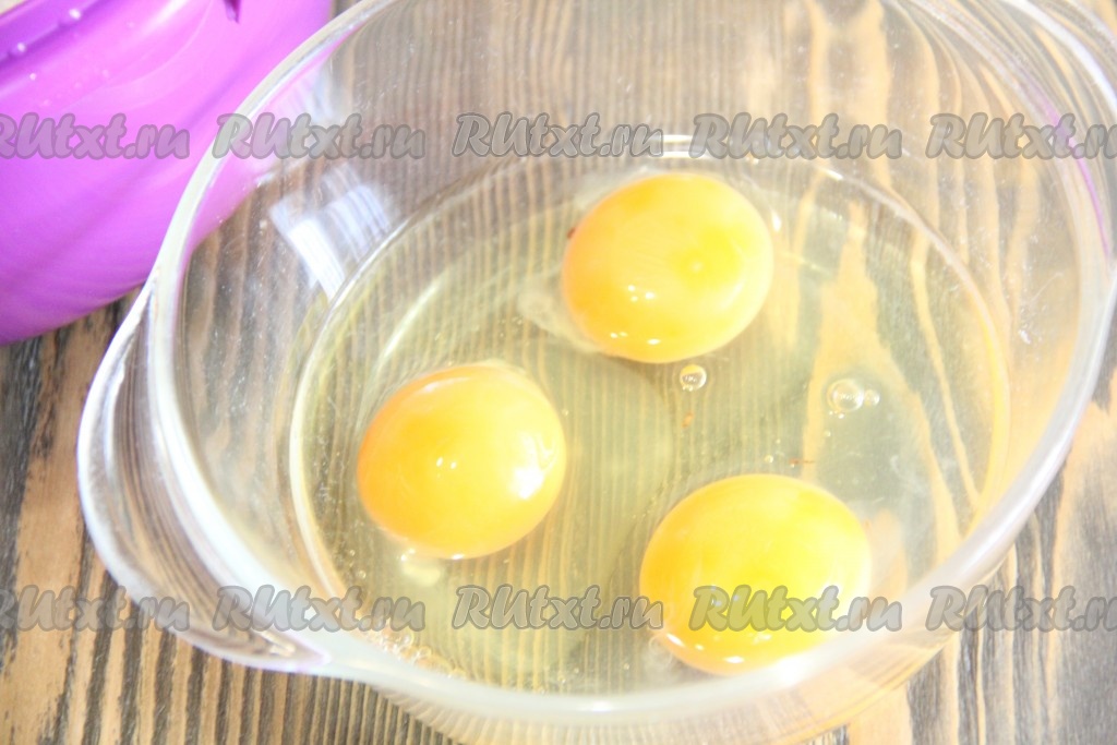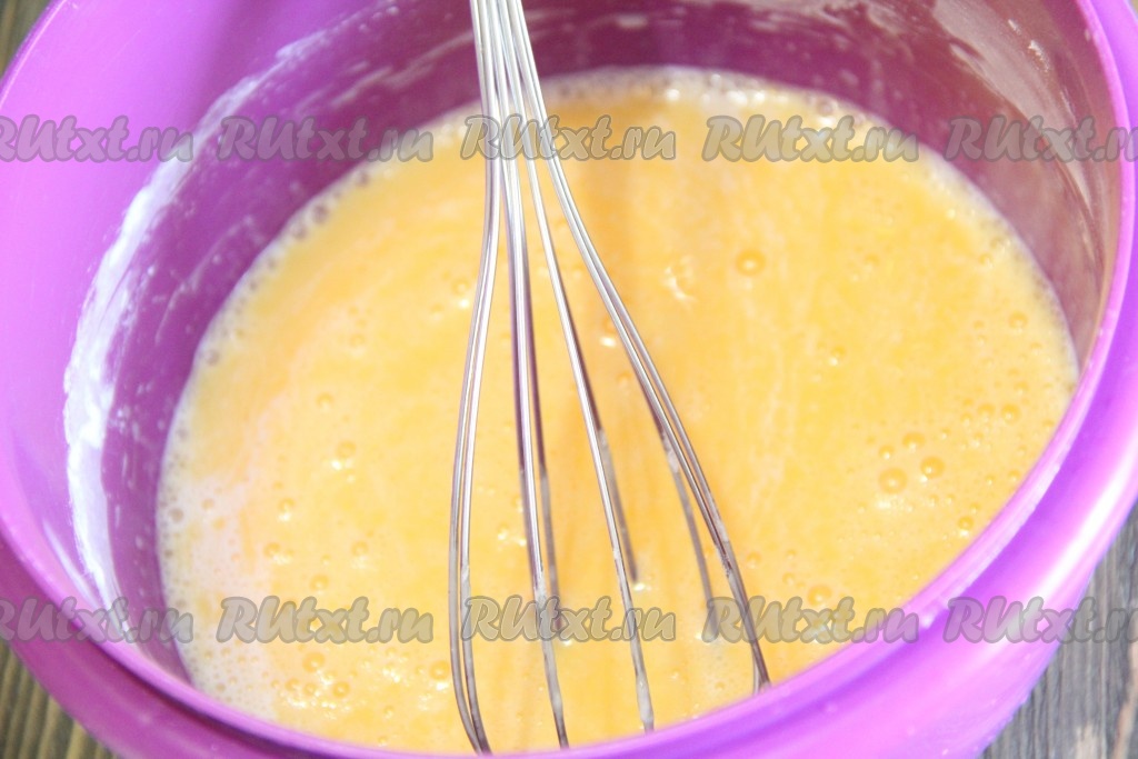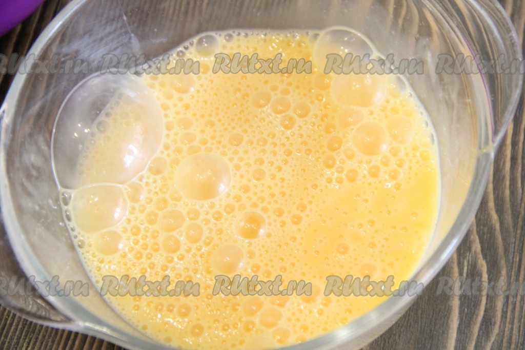 С помощью венчика слегка взбить яйца. Добавить молоко и ещё раз взбить.