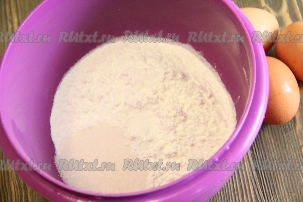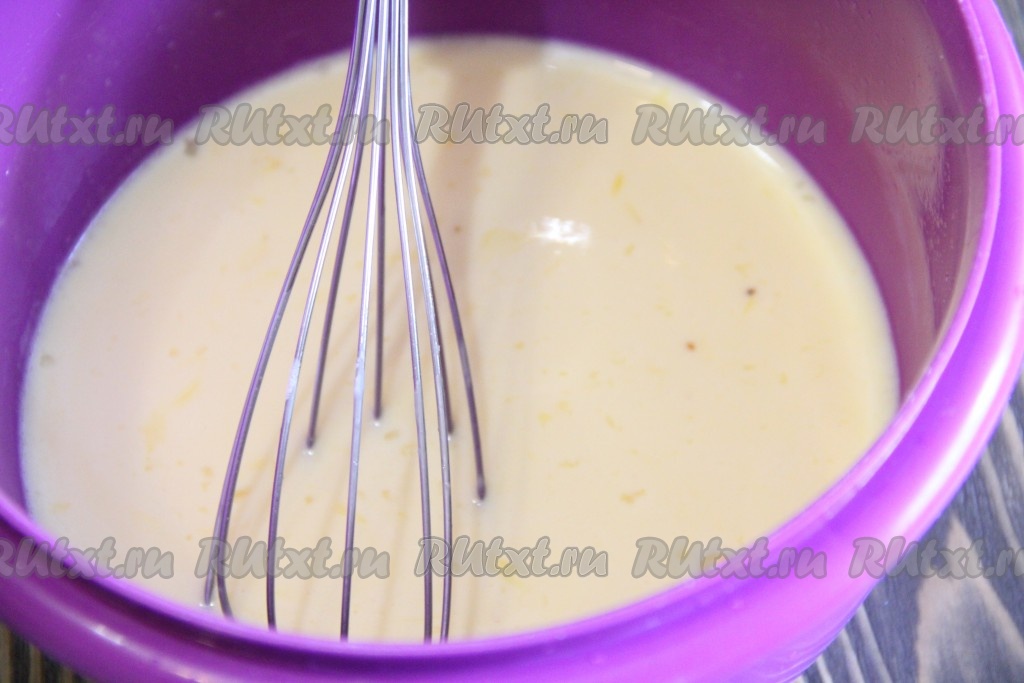 Перемешать тесто венчиком до однородного состояния. Тесто получится жидким.
